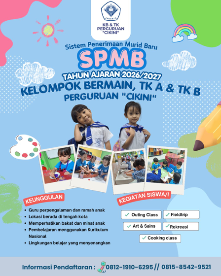 - TK Perguruan ”Cikini” Jln. Cikini Raya No.74-76 Jakarta Pusat. Telepon (021) 3102287, 081219106295, 081585429521